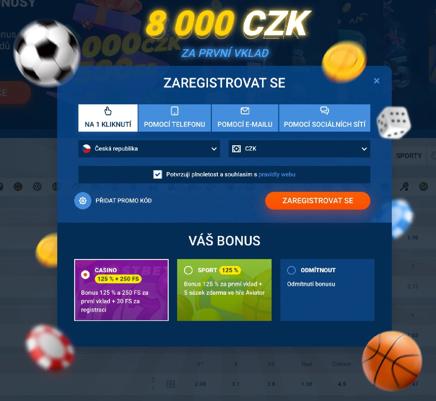 - zvýšené kurzy pro sportovní sázení.